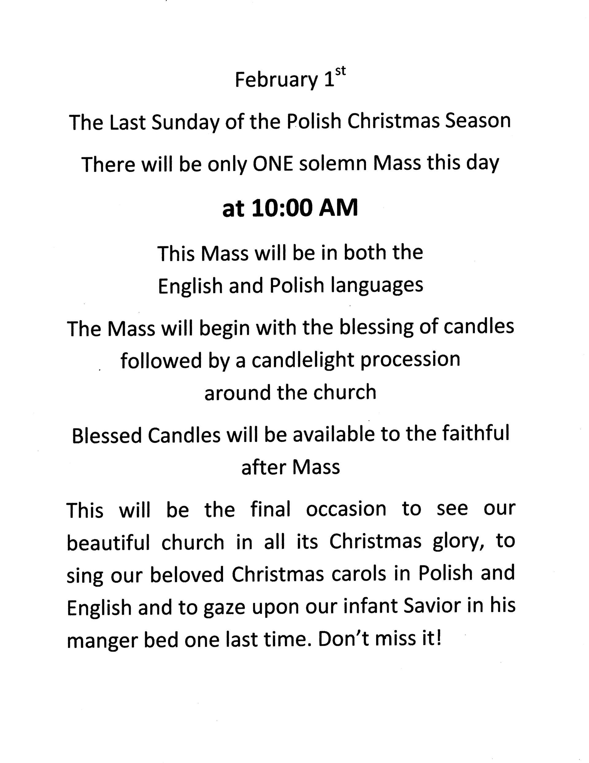 Sunday : 9am - Polish